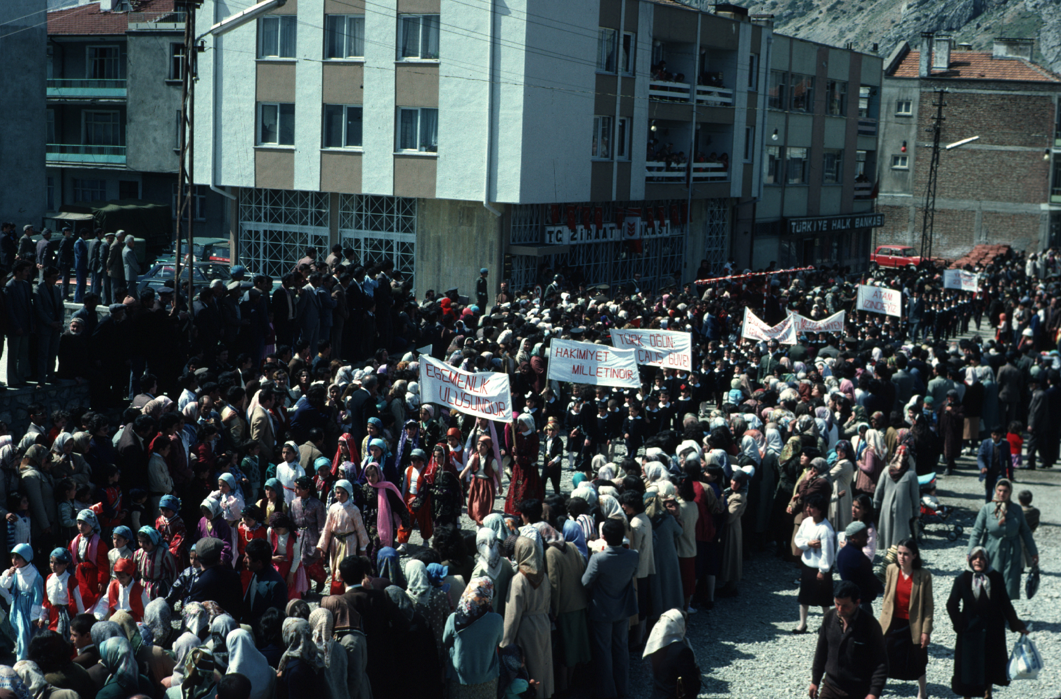 School children parade on Children’s Day, Eğridir, 1981, watched with enormous pride by their parents and other townsfolk.